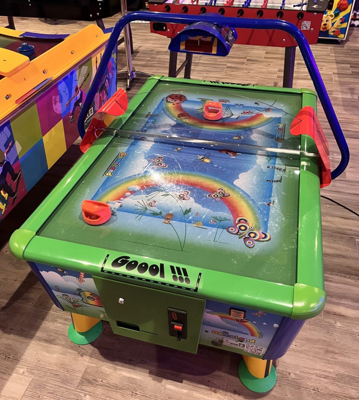 Verleihen Sie Ihrer Spielhalle, Ihrem Freizeitbereich oder Ihrem privaten Spielzimmer ein echtes Highlight mit diesem Air-Hockey-Tisch von Gameland. Der Tisch ist gebraucht und wurde sorgfältig geprüft, um ein reibungsloses Spielerlebnis zu gewährleisten. Dank seiner robusten Konstruktion und durchdachten Funktionen ist er die perfekte Wahl für Spielbegeisterte aller Altersgruppen.