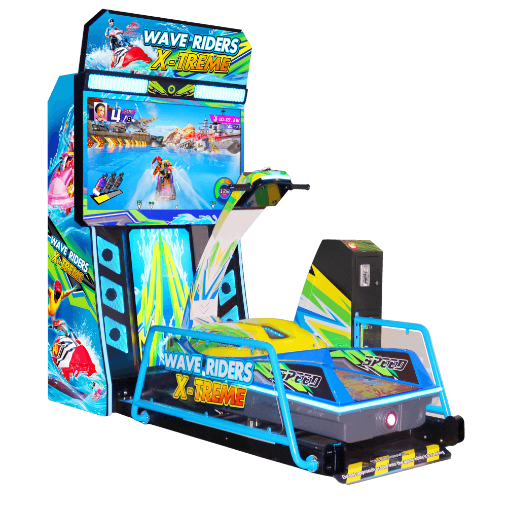 Mit dem Wave Rider X-Treme holen Sie ein echtes Highlight in Ihre Spielhalle oder Ihr Entertainment-Center. Das actiongeladene Rennspiel bietet ein intensives Fahrerlebnis auf einer bewegungsgesteuerten Plattform – inklusive realistischer Neigungseffekte, Winddruck und Vibrationen, die jede Welle, jeden Sprung und jede Kollision fühlbar machen.